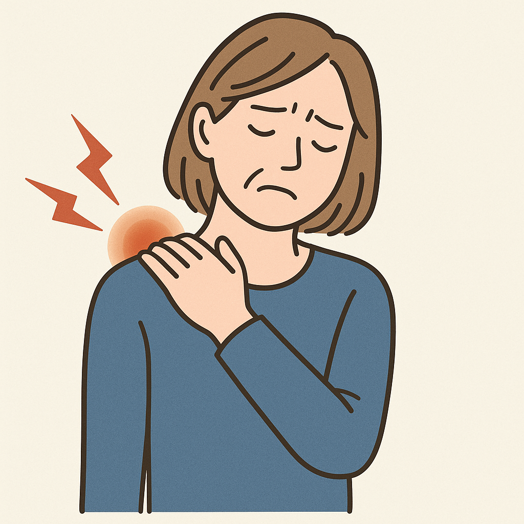 四十肩とは、肩関節の周りにある筋肉や腱、関節包(かんせつほう)などに炎症が起こり、痛みや動かしづらさを引き起こす病気です。