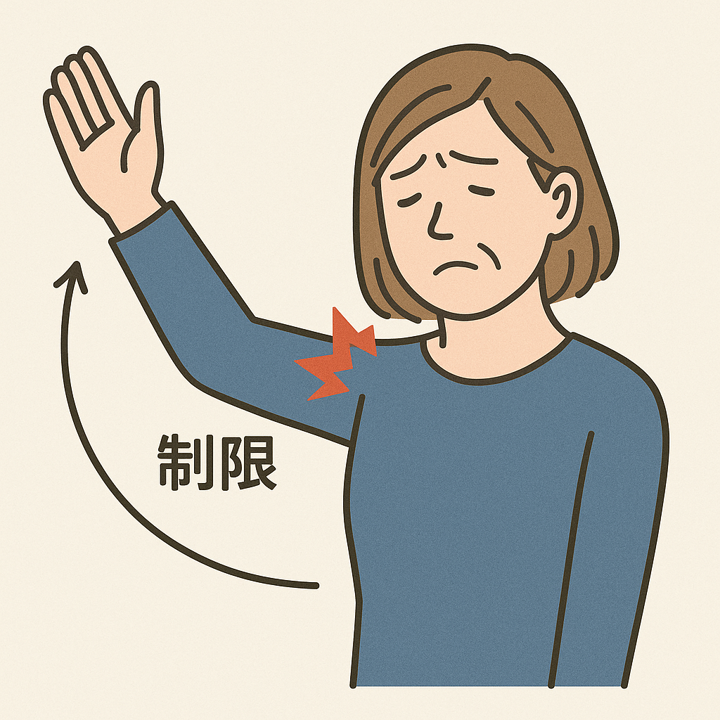 「腕を上げると痛い」「腕が上がらない」「服に腕を通すのが辛い」「夜にズキズキ痛む」