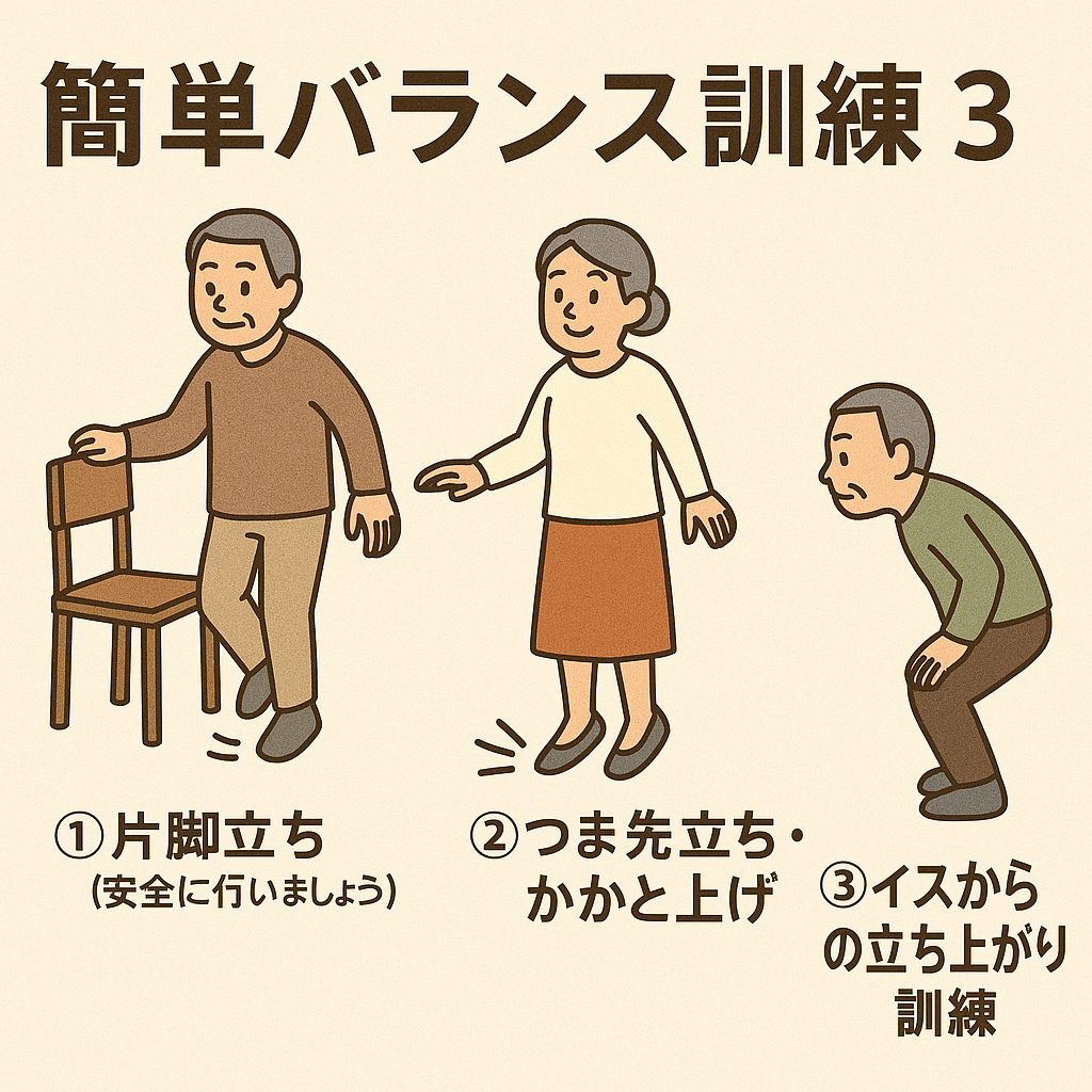 転倒を防ぐためには、「脚の筋肉」と「バランス感覚」を同時に鍛えることが大切です。