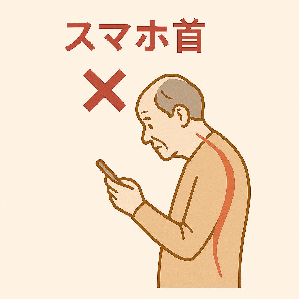 スマホを下に構えず、目の高さで持つようにしましょう。