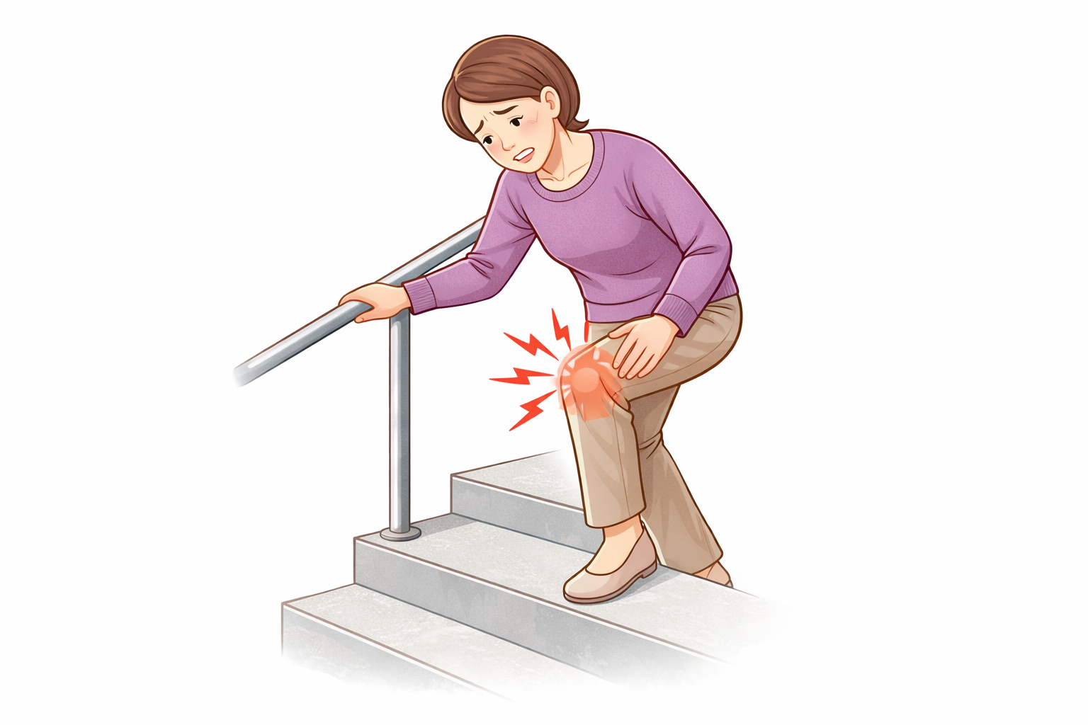 平地では問題なく歩けても、階段では膝に体重の2〜3倍の負荷がかかるため、膝のトラブルが表面化しやすくなります。